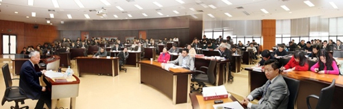 2010年3月27日上午,复旦大学党委书记秦绍德教授做客EMBA人文复旦讲座,与EMBA同学及校友分享并解读十一届全国人大三次会议的精神、意旨及政策动向。管理学院院长陆雄文教授担任了整场讲座的主持。
