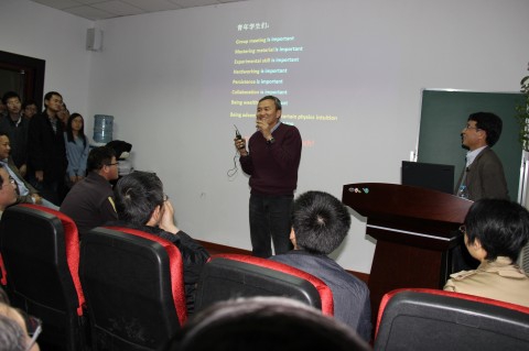 清华大学的薛其坤院士研究团队经过4年的辛苦耕耘,于2012年10月的实验中首次发现了量子反常霍尔效应,这一重大研究成果被在线发表于2013年3月的《science》上。4月22日下午,复旦大学物理系迎来了这位攻克量子世界制高点的杰出物理学家,他将与复旦大学物理系的师生们分享他的这一具有“诺贝尔奖”级别的研究成果的攻克历程。