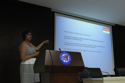 Vinson女士首先介绍了Science杂志的创刊理念和目标,重点说明了Science杂志收录文章的标准。作为高品质的学术刊物,Science录入文章的基本条件是质量。她强调,有些学者往往在实验上花费很长时间,而在文章的写作上却很草率,导致数据与论证不能很好匹配;或者虎头蛇尾,前面论证清晰,而最具创新的部分却匆匆带过,导致不能入选,令人惋惜。其次,研究的应用范围也是Science筛选文章的一大标准,除能为本领域作出贡献外,看其能否为其他领域的研究提供启迪。此外,文章能否引起各领域学者的兴趣和关注,以及文章的创新度等,也是非常关键的因素。