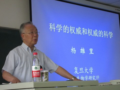 2013年9月16日下午,复旦大学上海医学院迎来新学年跨一级学科课程《科研论文的构思、撰写与发表》的第一节课。应课程负责人吴根诚、郑平教授诚邀,复旦大学神经生物学研究所、脑科学研究院杨雄里院士为我们开启第一讲——《科学的权威与权威的科学》。上海医学院所辖的基础、公卫、药学、护理等四个学院,中山、华山等十一个临床医院及有关研究机构的硕士、博士生合计200多人,一起聆听了精彩的报告,共同目睹了院士的风采。