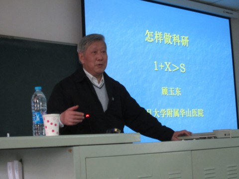 2013年10月21号下午,上海医学院研究生跨一级学科课程《科研论文的构思、撰写与发表》迎来第四讲,复旦大学附属华山医院手外科教授、中国工程院首批院士顾玉东先生为200名研究生带来了《怎样做科研》的精彩演讲。
