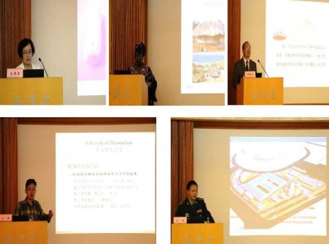 培训班最后的主题是境外疾病防控。上半场由第三军医大学热带医学研究所“热带病学教研室”王英主任主讲,他在主题为“非洲的疟疾综合防治措施”演讲中,详细地为大家讲解了疟疾的分类、传染源、传播途径、致病机制和用药等知识,以及在境外的实地疟疾防护工作。下半场是第三军医大学第一附属医院医疗部吴昊主任带来的主题为“海外抗击埃博拉——利比里亚中国ETU的工作实践与思考”的演讲,介绍了新发传染病埃博拉在利比里亚的流行情况、中国埃博拉治疗点(ETU, Ebola treatment unit)在当地从无到有的建设过程、ETU分区管理、与其他部门和组织合作交流的经验及最后的防治成果。两位军人的演讲多次被师生们的掌声打断,复旦师生为他们不畏艰难、所向无敌的工作精神所感动,也对他们以国家利益高于一切的忘我精神表达了崇高的敬意。