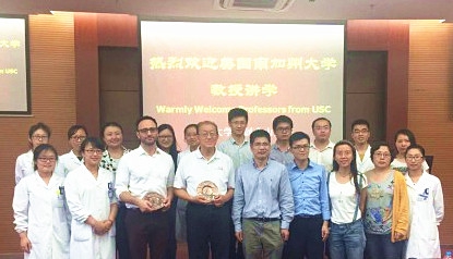 2015年6月17日下午,受金山医院副院长、影像科主任强金伟教授的邀请,美国南加州大学Keck 医学院放射学和神经外科教授、国际教育和研究主任Chi S. Zee和放射学助理教授 Keither D. Herr来金山医院讲学。Zee教授在美国放射学界享有较高声誉,尤其在神经影像方面有着很深的造诣,主编专著2部。Herr助理教授临床和研究的方向是急诊影像学诊断。我院影像科和临床科室医护人员、以及公共卫生中心、亭林医院及社区卫生中心放射科医师130余人参加了此次的学术活动。