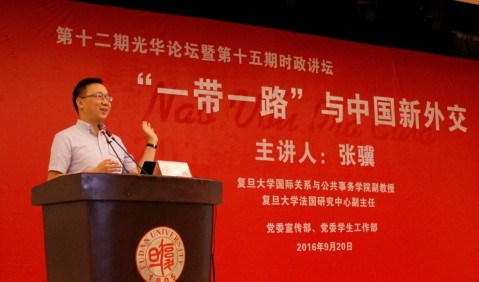 9月20日下午,校党委宣传部、党委学生工作部联合举办第十二期光华论坛暨第十五期时政讲坛。我校国际关系与公共事务学院副教授、法国研究中心副主任张骥围绕“‘一带一路’与中国新外交”主题为全校400余名本科生作专题报告。