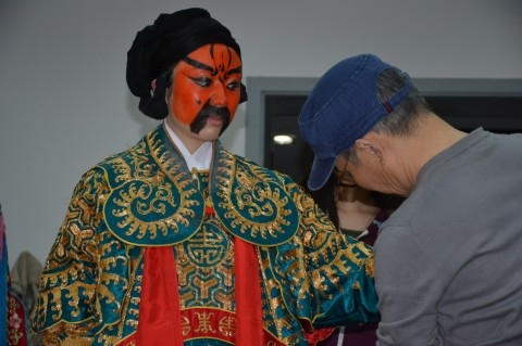 经过一个多小时的化妆、勒头、穿戴行头,专业戏曲老师为八位体验扮戏的同学扮戏完成。八位同学摇身一变,化为戏曲中的扈三娘、穆桂英、关羽、王昭君、虞姬、岳飞、寇准、陆文龙。在同学们惊艳于妆面和行头给自己的形象带来巨大变化的同时,老师也详细介绍了妆面和行头的相关知识。随后王凯指导上了扮相的学生学习戏曲的经典身段,包括关羽的推髯、陆文龙的掏翎子、虞姬的舞剑、王昭君的勒马、寇准的捧髯等等。