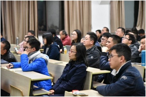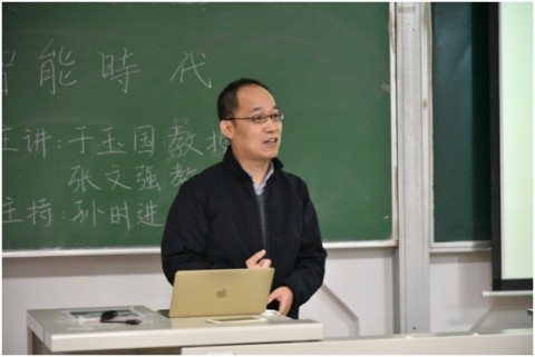 讲座伊始,复旦大学生命科学学院生理学和生物物理系研究员、博士生导师于玉国教授发表了主题演讲。2005-2011年,于玉国在耶鲁大学医学院神经生物学系先后师从神经生物学领域David McCormick院士和Gordon Shepherd院士,从事实验和计算神经科学的博士后研究,在神经生物学领域取得了丰硕的研究成果。讲座现场,于玉国对神经生物学领域的人脑科研动态及学术问题进行了精彩阐释,其中,利用人脑操控机械手臂完成动作的展示引起了到场师生的颇多关注。在对人脑智能开发等先进研究领域进行介绍与探讨之后,于玉国提出“人类智能是否应当对未来的人工智能俯首称臣?”的问题,进一步引发师生思考。他将人脑科学与佛教哲学相结合,指出人脑智能可能远远超出了我们的想象。因此,如何提高人的智慧,使得我们可以理解世界存在的一切法则,是应当深入思考的问题。