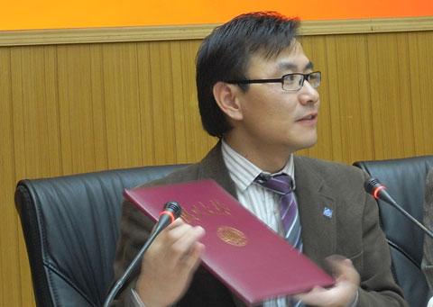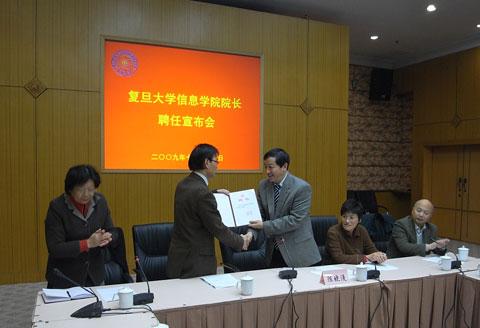 新闻中心讯 2009年11月17日 ,信息科学与工程学院新一任院长聘任宣布会在逸夫科技楼举行。副校长陈晓漫代表学校宣读院长聘任文件,并向瑞典皇家理工学院教授郑立荣颁发院长聘书。郑立荣接收聘书后简短地发表了就职感言。信息学院党政领导和全体教师与会。