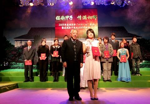经过三场初赛的激烈角逐,12月8日晚,“弦歌甲子·情满相辉”——2009年复旦大学一二·九”歌会决赛暨庆祝新中国成立60年晚会在相辉堂举行,复旦学生网首次对“一二·九”歌会进行网络直播。校党委书记秦绍德、校党委副书记陈立民、校党委副书记刘建中等老师出席晚会并颁奖。