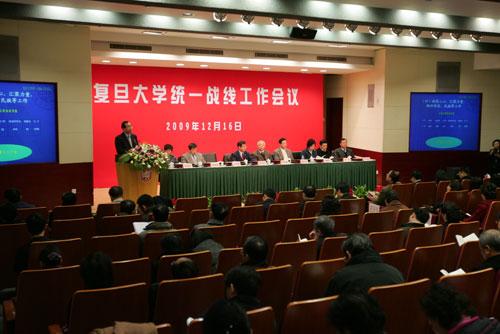 新闻中心讯 2009年12月16日,全校统战工作会议在光华楼举行。这是继2002年全校统战工作会议后、由党委召开的又一次重要会议。校党委书记秦绍德出席会议并作总结讲话。校长杨玉良主持会议。校党委副书记王小林作工作报告。校党委副书记陈立民、刘建中,常务副校长张一华、王卫平,副校长陈晓漫、桂永浩,校党委常委秦莉萍出席会议。