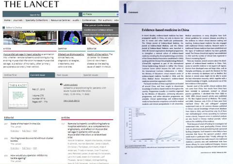 作为最早把“循证医学”理念引入我国临床医学的实践者,全国著名的消化肝病专家,复旦大学附属中山医院王吉耀教授矢志不渝,潜心研究、推广循证医学在临床实践的应用,受到国际同行的高度关注和肯定。最近受世界上排名前列的著名杂志《柳叶刀》(The Lancet,影响因子28.6分)总主编之邀,在该杂志的述评(comment)上发表述评文章“Evidence-based Medicine in China”(《循证医学在中国》)。