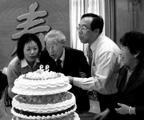 (校领导为张治道先生祝贺99岁生日时场景 摄于2007.4.7)