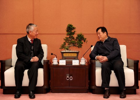 (蒋巨峰省长与秦绍德书记亲切交谈)