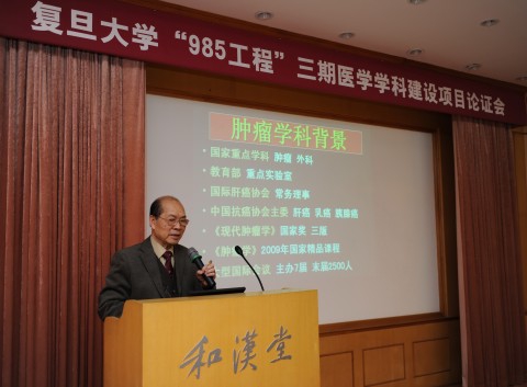 常务副校长王卫平、副校长金力、桂永浩出席论证会,并以专家身份参与论证;王卫平主持论证会;第二军医大学东方肝胆研究所王红阳院士,上海中医药大学校长陈凯先院士,上海交大医学遗传所所长曾溢滔院士,上海医学院闻玉梅院士,中山医院陈灏珠院士;著名专家清华大学协和医学院李立明教授、原上海第二医科大学校长王一飞教授、浙大二院外科彭淑牖教授、第二军医大学路长林教授、中科院上海生物化学与细胞生物学研究所丁建平教授等作为项目论证专家组成员参与论证;李立明、王一飞任专家组组长。