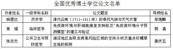 近日,从教育部和国务院学位办获悉,2010年全国优秀博士学位论文评选工作已全部完成,全国共计评选出100篇全国优秀博士学位论文和334篇全国优秀博士学位论文提名论文。