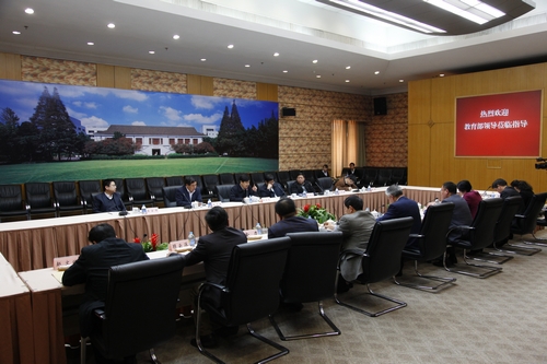 随后,杜占元副部长一行出席了调研座谈会,听取我校有关情况的汇报。秦绍德、陈晓漫、桂永浩、金力,以及研究生院、科技处、校产办等部门负责人参加了座谈。秦绍德简要介绍了我校历史以及院系设置、师资队伍、科研机构、人才培养等方面的发展概况。金力汇报了我校重大科技专项组织实施情况、研究生招生结构调整两方面的工作。桂永浩副校长汇报了我校科技产业情况。