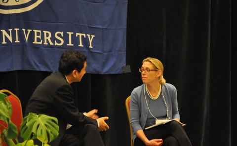 在当天的复旦“世联会”高峰论坛上,作为论坛的压轴议程,美国国务院负责该项目执行的官员Carola McGiffert女士与复旦大学校长助理、教务处长陆昉教授就此话题展开了坦率而深入的交流。
