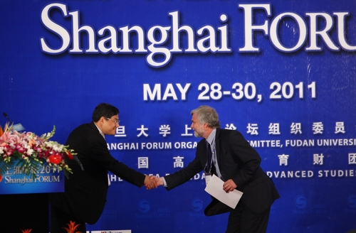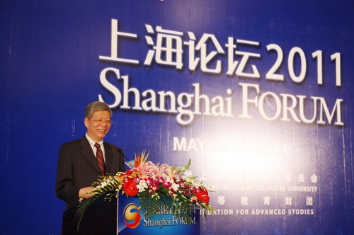 新闻中心讯 5月28日上午,“上海论坛2011”在上海西郊宾馆隆重开幕。上海市副市长赵雯,教育部党组成员、国家教育行政学院院长顾海良,复旦大学校长杨玉良,韩国SK株式会社副会长兼首席执行官崔再源出席会议并致辞。开幕式由复旦大学副校长桂永浩主持。诺贝尔经济学奖获得者詹姆斯•莫里斯(James A. Mirrlees)、中国经济体制改革研究基金会国民经济研究所所长樊纲、联合国贸易和发展会议秘书长素帕猜•帕尼帕迪(Supachai Panitchpakdi)、英国能源研究中心主任詹姆斯•弗格森•斯基(James Ferguson Skea)和复旦大学中国社会主义市场经济研究中心主任张军分别发表了主旨演讲。复旦大学经济学院院长袁志刚主持了主旨演讲。