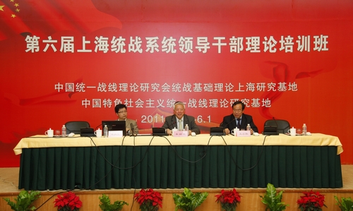 2011年5月31日至6月1日,我校中国统一战线理论研究会统战基础理论上海研究基地、中国特色社会主义统一战线理论研究基地与上海市委统战部共同举办的第六届上海统战系统领导干部理论培训班在复宣酒店隆重举行。上海市委常委、统战部部长杨晓渡,复旦大学党委书记秦绍德出席会议并讲话。复旦大学党委副书记、研究基地主任王小林,上海市委统战部副部长丁志坚、吴捷、周富长、季晓东等出席会议,上海市统战系统各单位领导、各区县党委统战部部长约50人参加了培训。