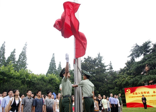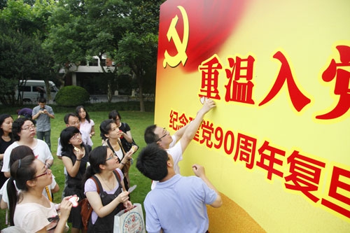 新闻中心讯 7月1日,雨后的复旦校园清新盎然,全校师生以昂扬的精神面貌迎来了中国共产党成立九十周年的纪念日。