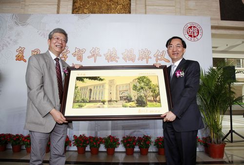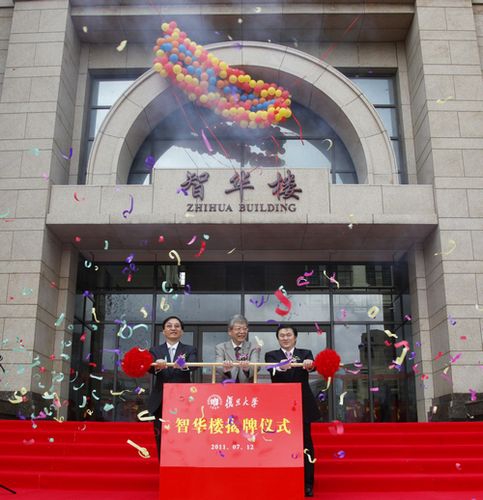 新闻中心讯 7月12日,我校在江湾校区举行“智华楼”揭牌仪式。校长杨玉良,复旦大学教育发展基金会董事、智华基金董事、香港恒基兆业副主席林高演等共同为“智华楼”揭牌。副校长许征出席仪式,仪式由副校长冯晓源主持。