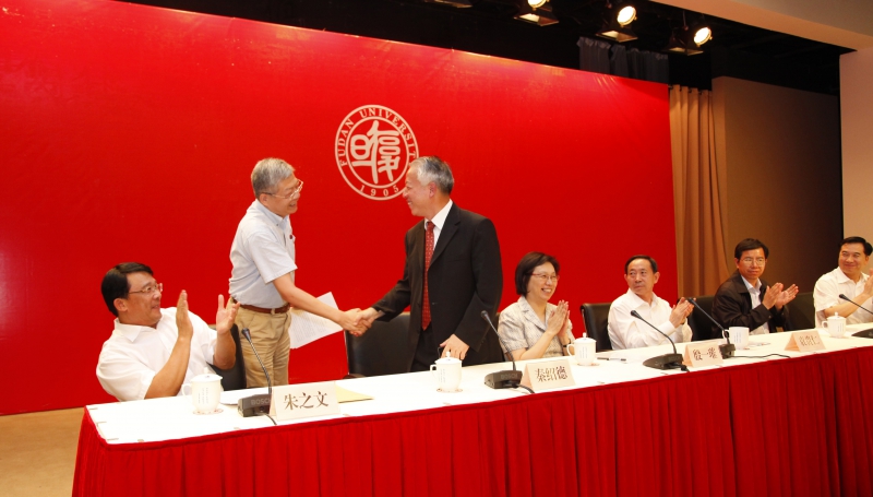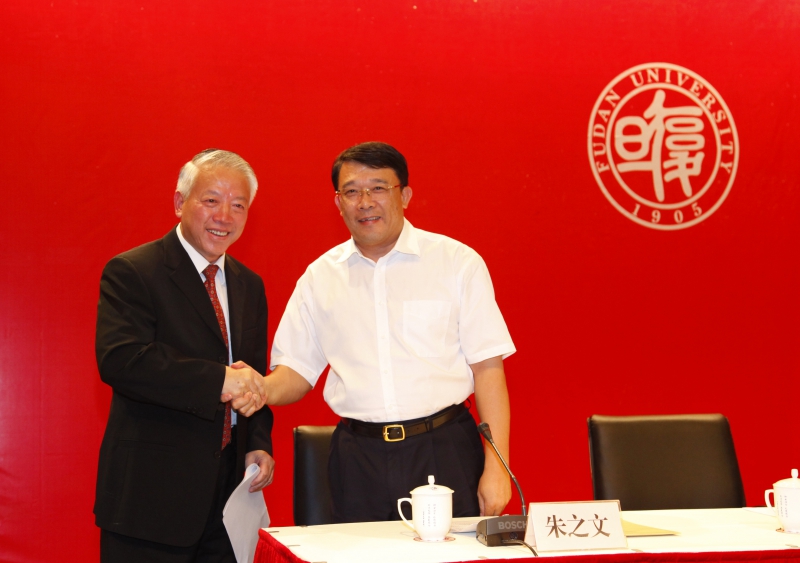 新闻中心讯 9月13日下午,我校在光华楼吴文政报告厅举行全校教师干部大会。中组部干部三局局长喻云林在会上宣读了中共中央关于复旦大学党委书记职务任免的决定,任命朱之文为复旦大学党委书记,秦绍德因年龄原因不再担任复旦大学党委书记职务。