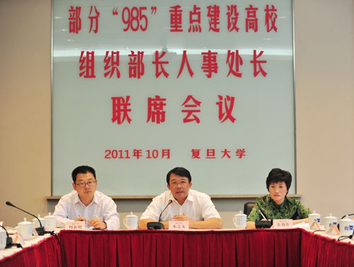 部分“985”重点建设高校组织部长人事处长联席会议每年举办一次,主要目的是交流高校组织人事工作中做法和经验,分析研讨问题和对策,并向上级组织人事部门提出合理化建议。出席会议的有北京大学、清华大学、复旦大学、上海交通大学、南京大学、浙江大学、西安交通大学、中国科学技术大学、哈尔滨工业大学等首批列入国家“985工程”重点建设的9所高校党委组织部部长、人事处长。