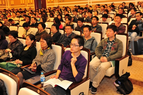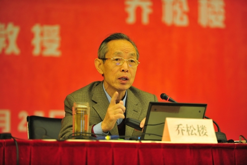 在演讲中,乔松楼教授指出,当今世界高科技的发展呈现出加速度更新、交互式渗透、全方位竞争、跨国界合作的发展态势。他以丰富的图片和详细的数据向现场听众直观展示了现代信息战争侦察立体化、打击精巧化、反应高速化、防护综合化和控制智能化的五大基本特点,并从认识、装备及人才培养三方面对国防现代化建设提出自己的一些思考。他指出,要充分认识到科学技术在信息化战争中的重要性,军队建设也要由数量规模型向质量效能型、由人力密集型向科技密集型转变。乔教授以诙谐的言辞、率直的口吻和通俗易懂的讲解赢得了场内近四百名师生的阵阵掌声和笑声。
