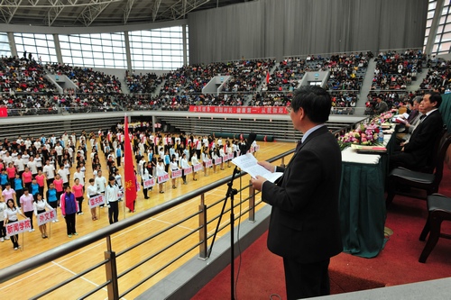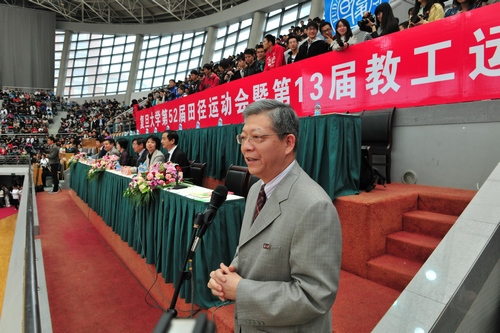 10月28日上午,复旦大学第52届田径运动会暨13届教工运动会开幕式在我校正大体育馆隆重举行。校党委副书记陈立民为校运会致开幕词,杨玉良校长宣布校运会开幕。