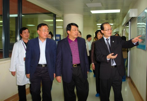 调研组一行在儿科医院黄国英院长、徐虹书记的陪同下,现场察看了儿科门急诊、新生儿重症监护病房、转化实验中心、血液科病房、特需门诊和院容院貌。在察看过程中,朱之文还与儿科医院领导谈及做好儿童疾病防治、保护新生儿安全对社会稳定和家庭和谐的特殊意义。