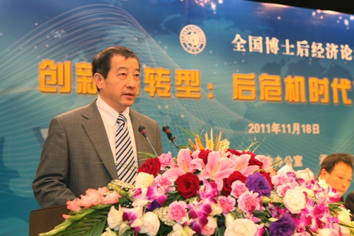 新闻中心讯 11月18日,“创新与转型:后危机时代的中国经济”全国博士后经济论坛在我校举行。中国博士后科学基金会秘书长夏文峰、上海人力资源与社会保障局副局长毛大立、复旦大学常务副校长陈晓漫、全国高校博士后研究会会长范德尚出席论坛开幕式并致辞。来自全国多所知名高校及科研院所的专家学者及博士后代表近四百人参会。开幕式由中国博士后科学基金会基金处处长刘连军主持。