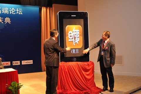 上午9时许,在全场的热烈掌声中,教育部科技司信息化处处长、信息化推进办公室综合组组长张拥军和民进中央副主席、复旦大学副校长蔡达峰携手揭幕并启动“i复旦”,这标志着中国大陆高校首个移动校园门户的正式开通,来自全国各地100多所高校的近250位嘉宾代表共同见证了这个激动人心的时刻。