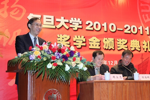 新闻中心讯 12月20日下午,“扬帆启航——复旦大学2010-2011学年奖学金颁奖典礼”在相辉堂举行。奖学金颁奖典礼是复旦大学一年一度的盛会,旨在褒奖品学兼优、全面发展的复旦学子,在全校营造一种鼓励勤奋、鼓励创新、鼓励攀登的文化,激励全校学生积极上进,不断超越。党委副书记陈立民、副校长冯晓源、对外联络与发展处处长张宏莲以及各国驻沪总领馆和设奖单位嘉宾等出席。各院系的九百余名中外获奖学生参加了颁奖典礼。