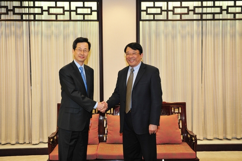 签约仪式后,复旦大学党委书记朱之文会见了朴仁国总长。