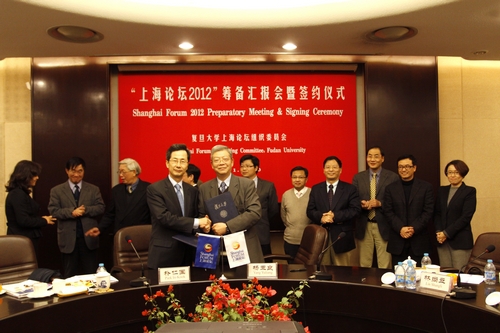 2011年12月20日下午,上海论坛2012签约仪式在复旦大学举行。校长杨玉良教授、韩国高等教育财团事务总长朴仁国出席了签约仪式并致辞。复旦大学副校长林尚立进行了主题阐释。会议由上海论坛组织委员会秘书长陈寅章主持,上海论坛组委会委员、论坛专家委员会委员等出席了发布会。