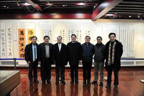 会谈前,蔡冠深校董一行还观摩了在蔡冠深人文馆举行的由台湾何创时书法艺术基金会和复旦大学联合主办的“百年风华、人间岁月”复旦近代名家翰墨展。