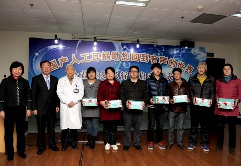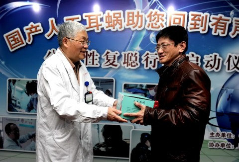 同日,为回馈社会,在该院举行的“国产人工耳蜗助您回到有声世界——公益性复聪行动”启动仪式上, 60位经该院确诊为重度或极重度耳聋且家境困难的患者免费获得该院国产人工耳蜗。