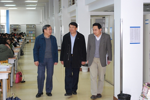 2012年3月20日下午,朱之文书记一行到图书馆调研,听取了工作汇报,考察了文科流通、报刊、参考咨询和采编等部门和各阅览室,并与馆领导班子进行了座谈。
