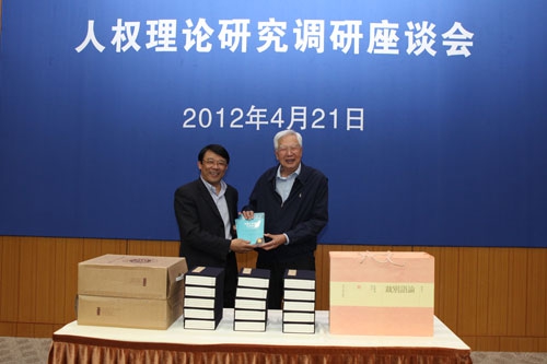 为进一步推动国内人权理论研究,十届全国政协副主席、中国人权研究会会长罗豪才一行,4月21日到我校进行考察调研,就人权研究机构建设、人权理论研究及人权教育与培训等内容与我校专家进行座谈。校党委书记朱之文出席座谈会并致辞,副校长许征主持了座谈会。
