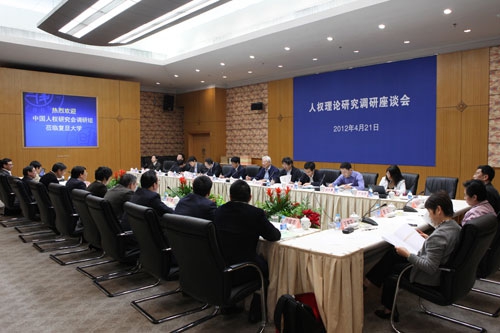 复旦大学人权研究中心主任彭希哲教授就我校人权理论研究和建设情况向调研组做了汇报,来自法学院、国际关系与公共事务学院、社会发展与公共政策学院、新闻学院、社会科学基础部等院系10余名专家和学者参加了座谈会。