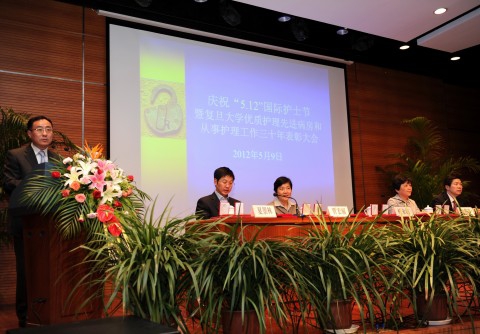 新闻中心讯 复旦大学庆祝5.12国际护士节暨优质护理先进病房和从事护理工作三十年表彰大会5月9日在中山医院召开, 181人荣获卫生部从事护理工作三十年证书和证章;中山医院肾内科病房和华山医院神经外科三病房荣获卫生部优质护理示范病房称号。