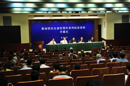 校长杨玉良与全国高校古委会秘书长杨忠共同为章培恒先生纪念室揭牌。副校长林尚立、全国高校古委会主任安平秋、复旦大学首席教授王水照等在纪念活动开幕式上致辞。