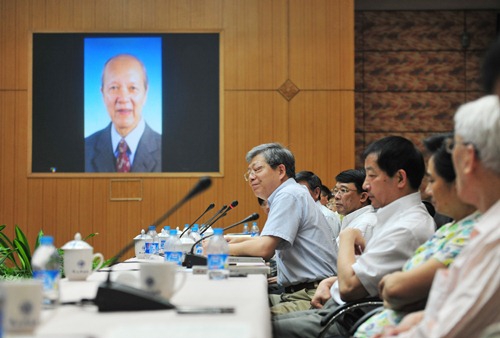 新闻中心讯 7月11日,我校在逸夫科技楼举行谷超豪先生追思会。校党委书记朱之文、校长杨玉良、常务副校长陈晓漫、校党委副书记陈立民等校党政领导,与谷先生的学生、同事、身边工作人员、亲属以及数学学院师生代表、校友会代表等一起座谈,深切缅怀谷先生。陈晓漫主持追思会。