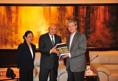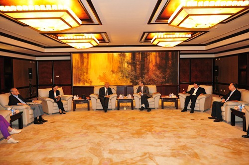 会见中,校长杨玉良向来宾们介绍了学校近期在人才培养,学科建设等方面开展的工作。副校长林尚立就我校近年来在人文社会科学方面取得的一些进展做了介绍。国际关系与公共事务学院教授吴心伯介绍了复旦大学中美关系研究及与美国有关大学合作建立中国研究中心的计划设想。文物与博物馆学系教授朱顺龙向来宾们介绍了以董建华、董建成母亲名字命名的董顾丽真艺术博物馆建设进度及推进方案。