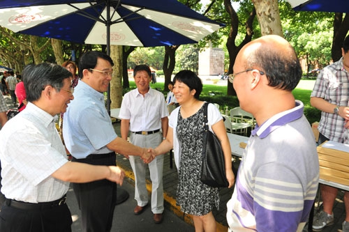 报到日当天,校园内热闹非凡。身着书院服的辅导员和导师们在各自的迎新点热情地迎接新生的到来。校党委书记朱之文,副书记陈立民,副校长桂永浩、陆昉到现场看望新生,慰问迎新工作人员。当天,学校还举办了新生家长座谈会。此外,为更好地解决报到当天校园及周边的交通问题,学校提前在网站上发布了报到日当天校内车辆行驶路线和交通管理规定,并在迎新点附近安排了小型车辆,免费帮助入住南区的新生送运行李。
