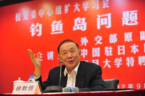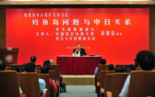 新闻中心讯 9月27日上午,复旦大学党委中心组扩大学习会在光华楼东辅楼102报告厅举行。外交部原副部长、中国驻日本原大使、复旦大学特聘研究员徐敦信校友应邀作“钓鱼岛问题与中日关系”辅导报告。