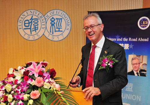 此次讲座是10月10至15日由复旦大学欧洲问题研究中心、复旦大学外事处、欧盟驻华使团联合主办的欧元展系列活动的高潮。众多校内外师生通过参观位于美研中心的欧元展和聆听讲座,对欧元相关背景知识有了更全面深入的了解。