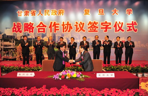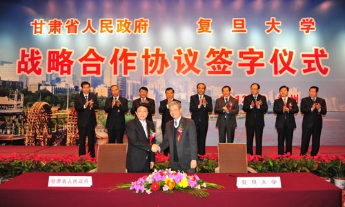 甘肃省委书记、省人大常委会主任王三运,复旦大学党委书记朱之文在签约仪式上致辞。甘肃省委副书记、省长刘伟平,复旦大学校长杨玉良代表双方签署协议。