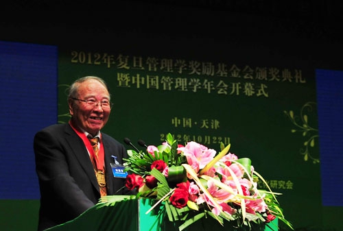 北京航空航天大学黄海军教授和中国科技大学梁樑教授,以其多年来在我国管理科学与工程领域的研究中所做出的卓越成就夺得了今年的“复旦管理学杰出贡献”奖。他们将分获每人50万元人民币的奖金。为了表彰对中国管理学学科建设、人才培养等方面做出开创性、奠基性贡献的老一辈工作者,今年,基金会专门增设了“复旦管理学终身成就奖”。被誉为“中国质量管理之父”的中科院数学与系统科学研究院研究员、中国工程院院士刘源张成为了该奖项的首位获得者,并被授予专门制作的金质奖盘。