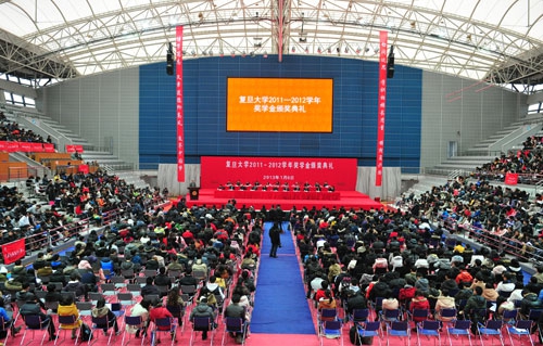 新闻中心讯 1月6日下午,“发现身边的榜样,寻找追梦的动力”——复旦大学2011-2012学年奖学金颁奖典礼在复旦大学正大体育馆隆重举行。校长杨玉良,党委副书记、校奖(助)学金评审委员会主任陈立民,副校长、复旦大学教育发展基金会秘书长冯晓源,副校长陆昉等出席了颁奖典礼。此外,设奖单位嘉宾、院系党政负责人、职能部处领导、校奖(助)学金评审委员会委员、获奖学生等三千余人齐聚一堂,共同经历这一隆重而又难忘的典礼。