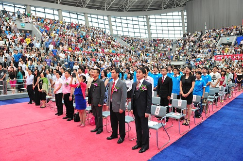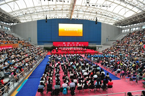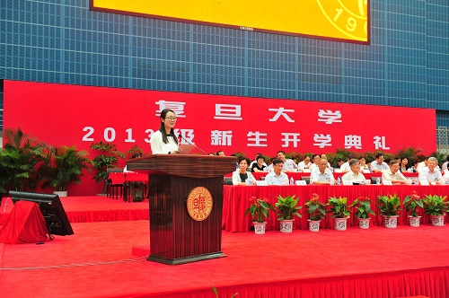 9月6日上午,复旦大学2013级研究生开学典礼在正大体育馆隆重举行。全体在校领导,校内部分两院院士、校教学指导委员会负责人,第五届“研究生心目中的好导师”代表,各研究生培养单位、机关部处负责人,以及新任博士生导师应邀出席典礼,共同欢迎来自世界各地的全体2013级研究生新生。典礼由常务副校长陈晓漫主持。